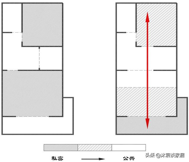 和大多数二手房一样,这套房子不能做很大的改动,南北分别一大一小两间卧室,中间是客餐厅,怎么看空间都显得非常局促,要想家人住得舒适,女屋主只能舍弃掉客餐厅功能,让室内显得更加敞亮。还有夫妻二人面临着另外一个问题,就是想给女儿设计一个有安全感的房间,室内既有独立的空间,又能让家看上去是一个整体,当人在南北两间卧室内,可以面对面互动,所以最终方案作了如下改动: